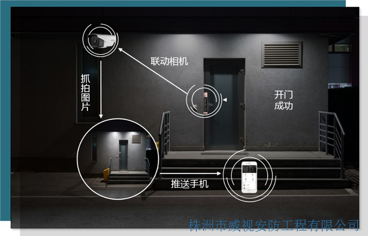 智能聯(lián)動:智能鎖和攝像機實現(xiàn)聯(lián)動抓拍,開門的同時抓拍監(jiān)控畫面?zhèn)魉偷绞謾C,便于核實進(jìn)出人員和事后查證。
